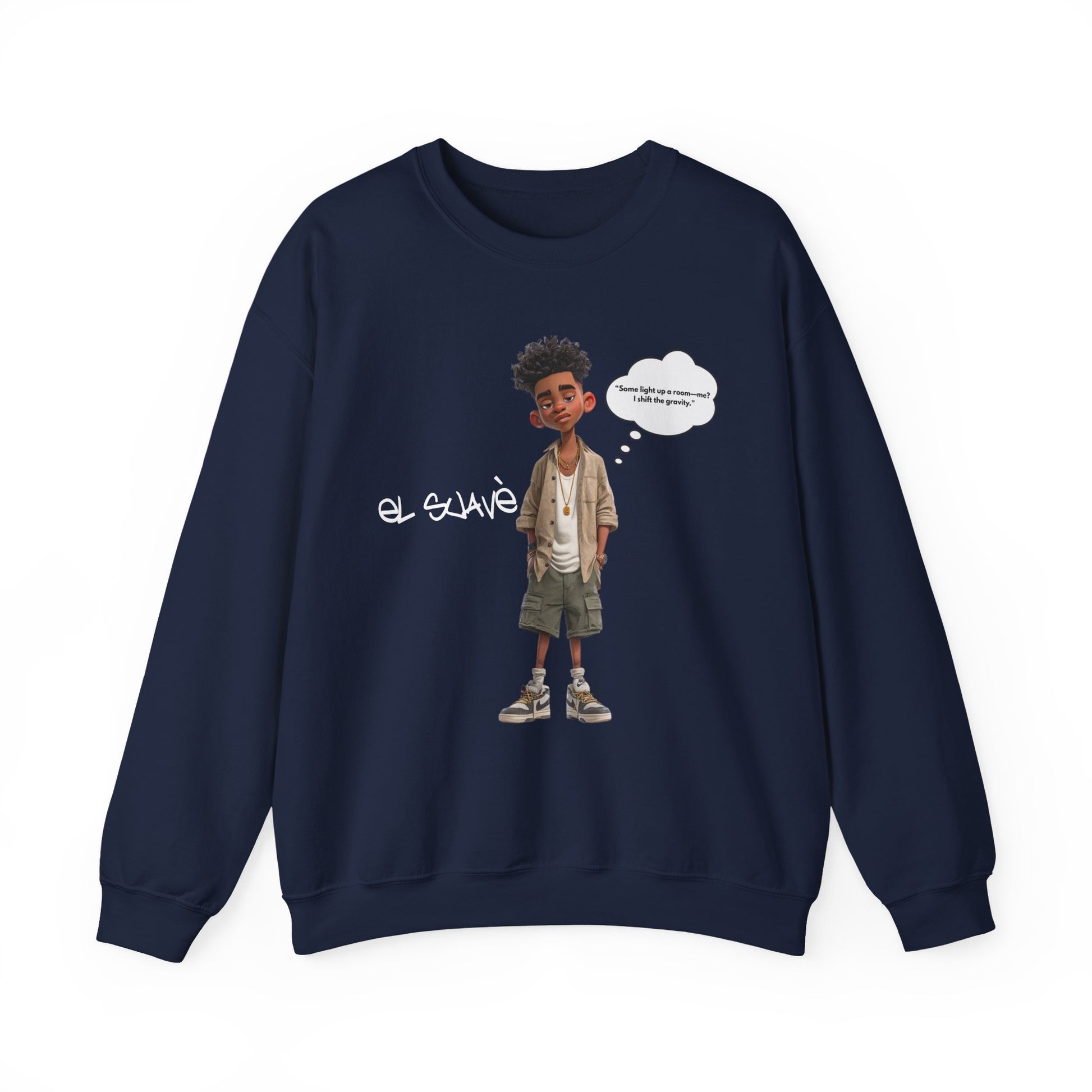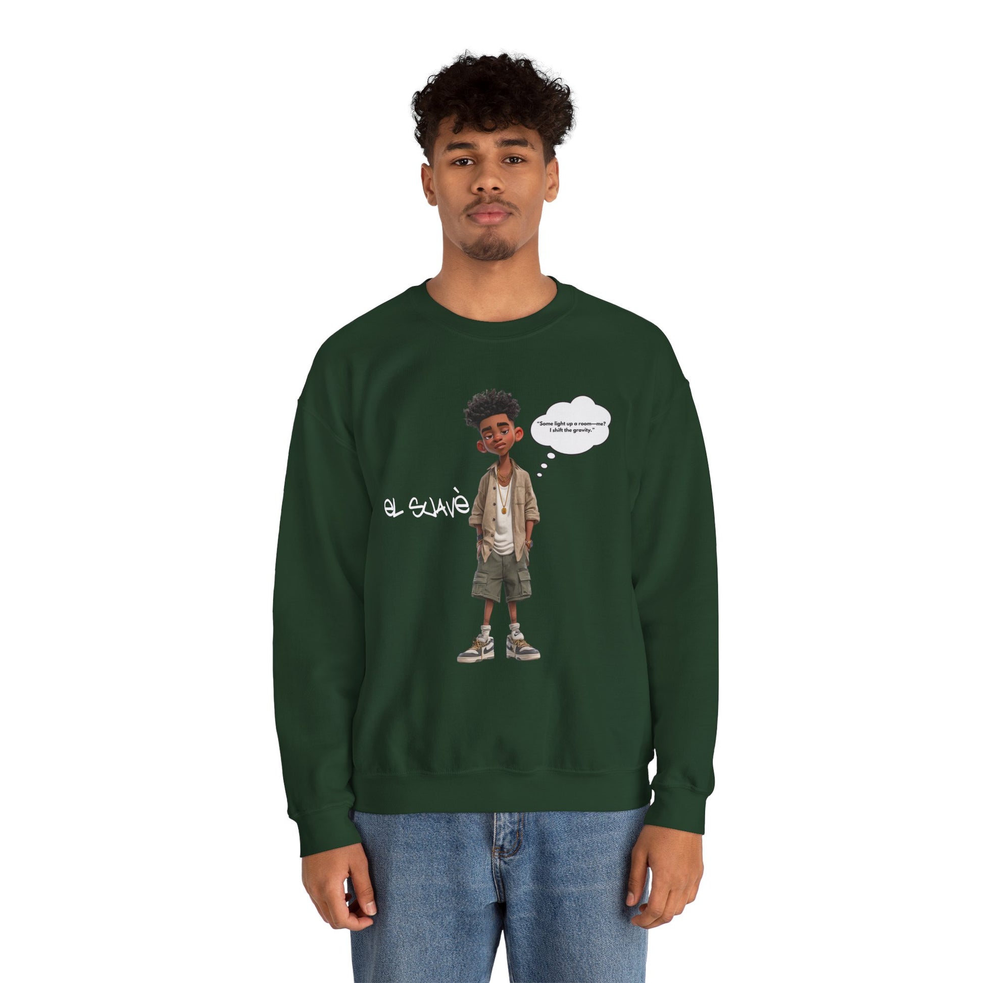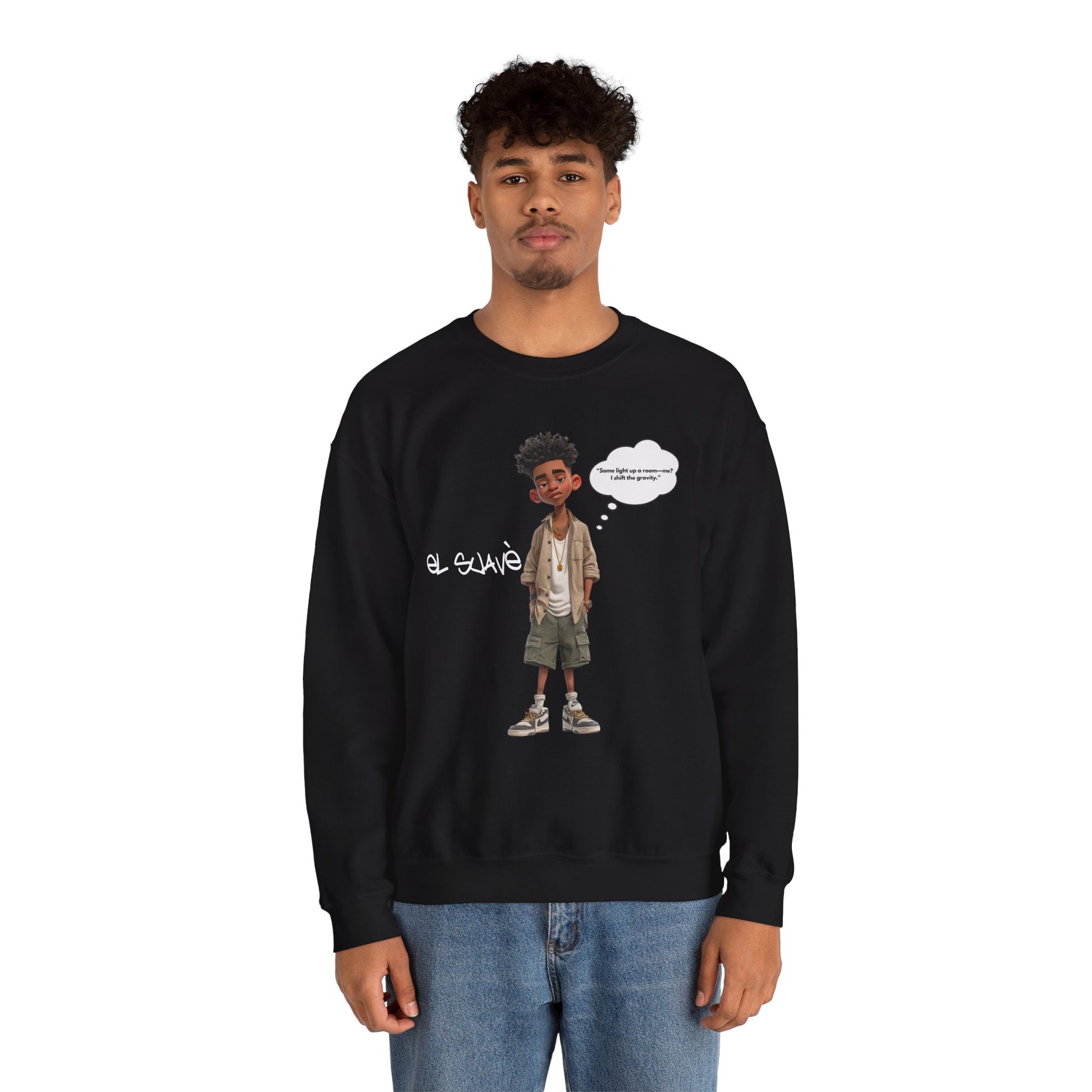 The El Suave™ Crewneck Sweatshirt from the Mood Collection is designed for those who move with quiet power. Made with a soft cotton-blend, it delivers all-day comfort and a confident, tailored fit. Featuring El Suave’s catchphrase—“Some light up a room. Me, I shift the gravity.”—this crewneck embodies presence and influence. Wear it to stay warm, look sharp, and remind the world of your impact. This is more than a sweatshirt—it’s a statement of style and strength.