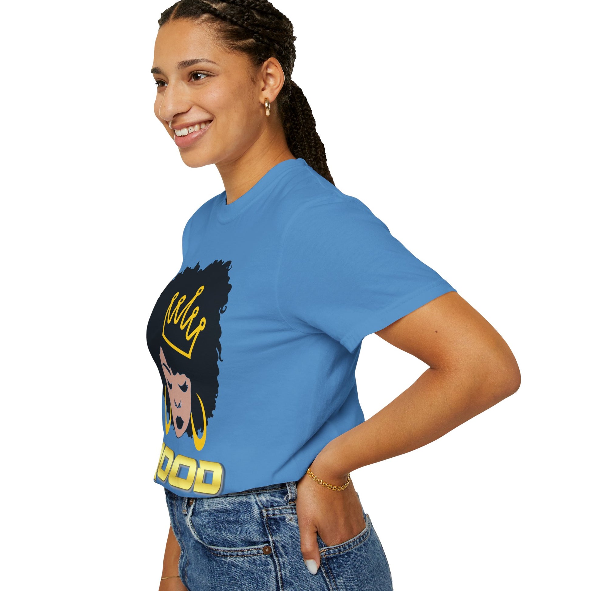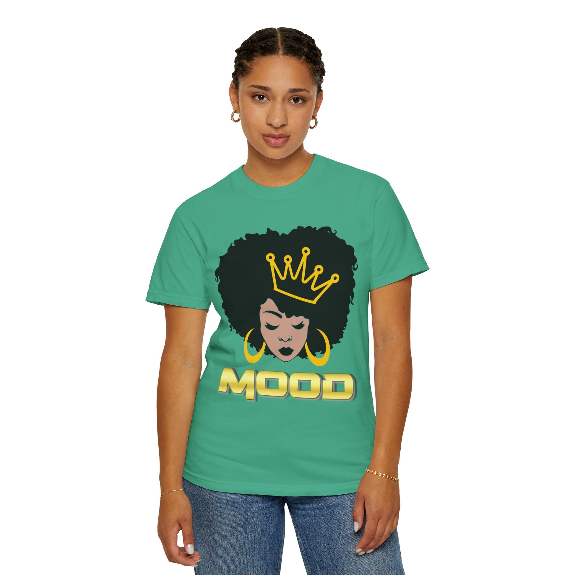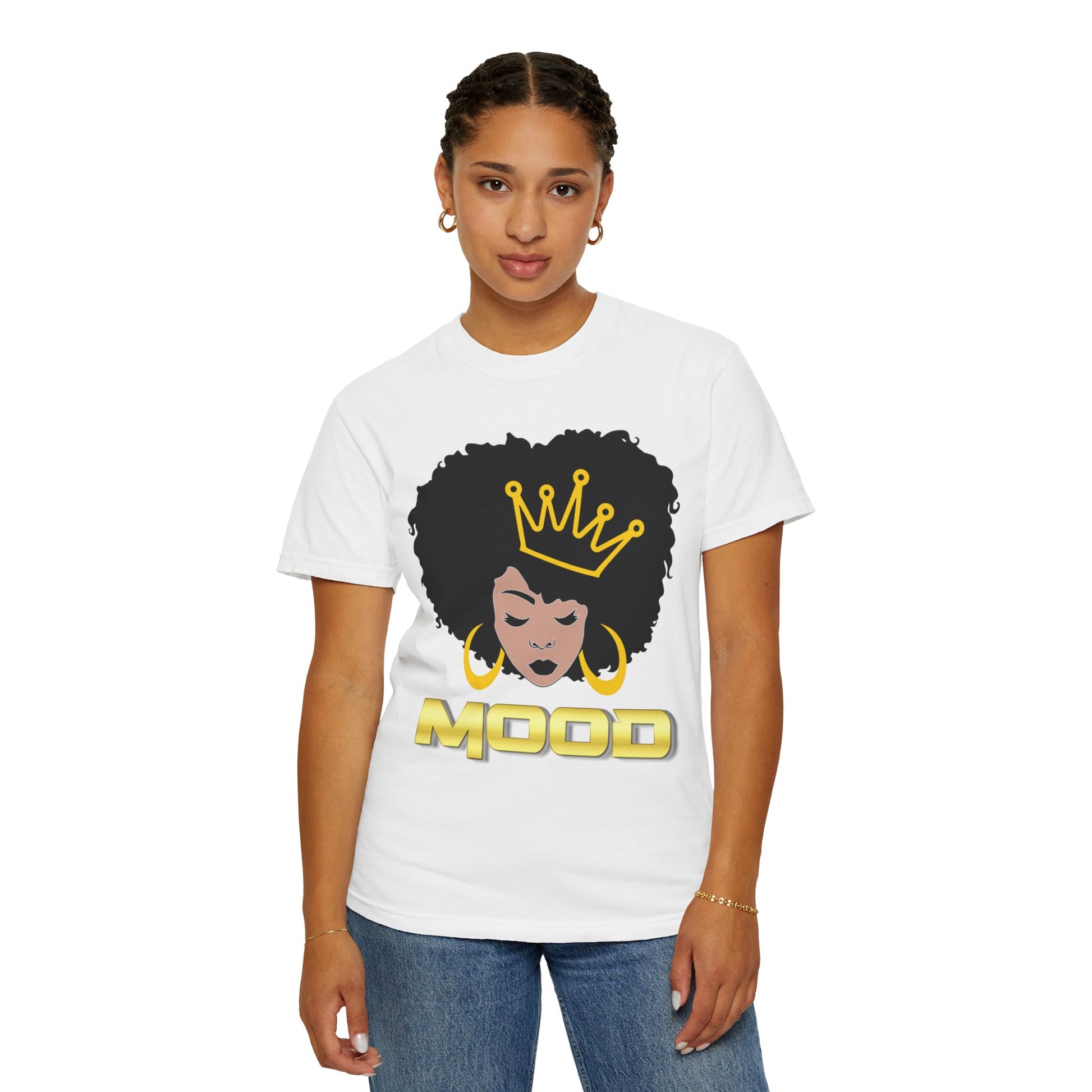 Crafted for confident living and standout moments, this piece from the M.O.O.D. Collection is more than fashion—it’s a statement. The back remains blank to let your presence speak through the art upfront. An excellent gift for women owning their glow, celebrating themselves, or empowering someone they love. Wear your crown. Set your tone. Rule your mood.