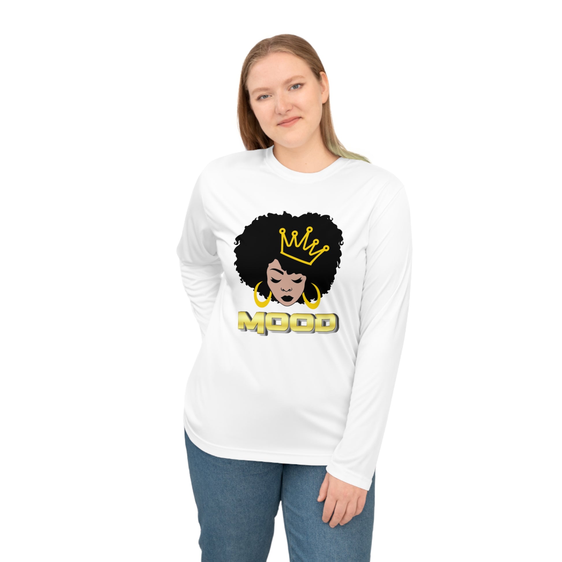 Our Queen Mood Long-Sleeve Performance Shirt was designed for the bold, the focused, the unstoppable. Made with 100% moisture-wicking polyester interlock, this lightweight athletic top helps you stay dry, cool, and confident during your most demanding moments—because you don’t just show up, you reign. Whether you’re lifting, running, or flowing through your day, this performance shirt keeps pace with your ambition while serving as a reminder that your strength is sovereign.